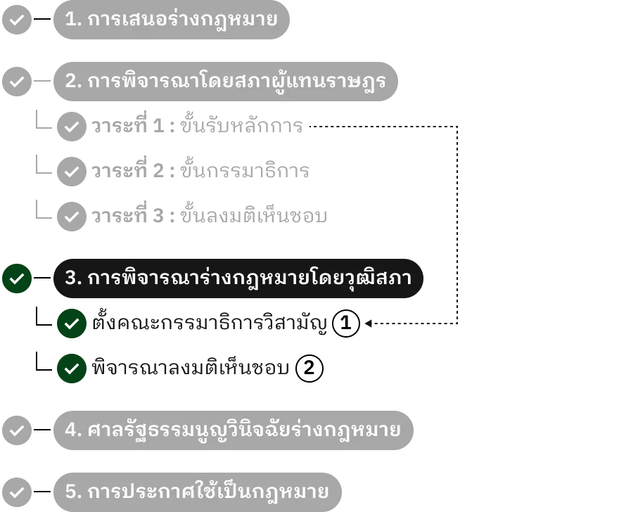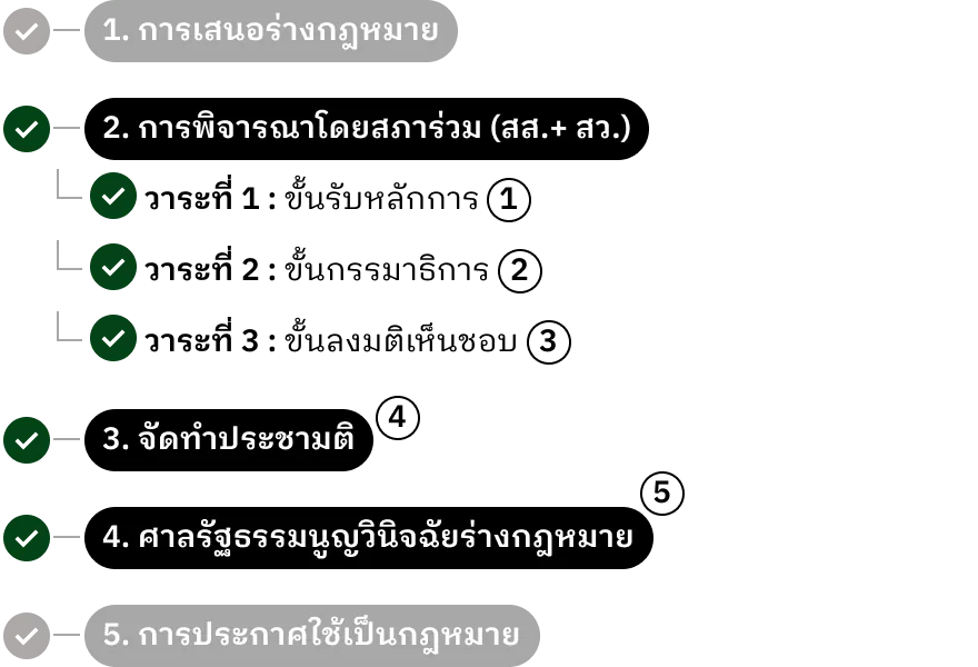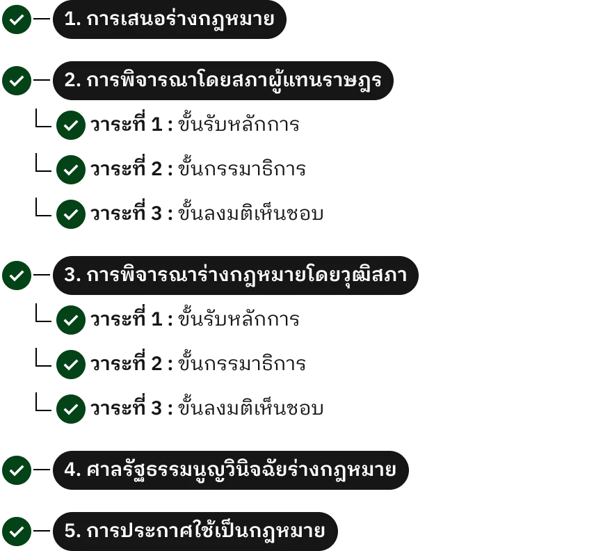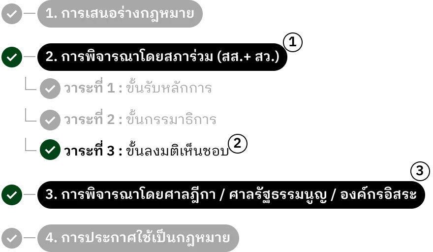 กฎหมายที่ออกโดยรัฐสภา ต้องผ่านกระบวนการ 3 ขั้นตอนสำคัญ